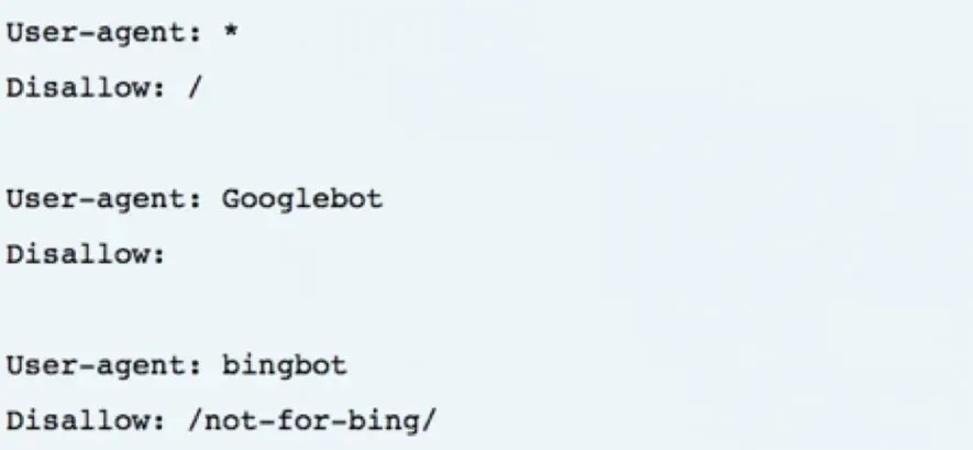 The bingbot that encounters the user agent “Bingbot” will execute this command. The bot “Googlebot Video”, however, will skip this command and look for a more specific instruction.