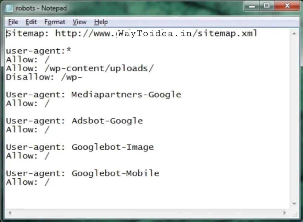 - WayToidea.in/wp-admin – was given a disallow command.